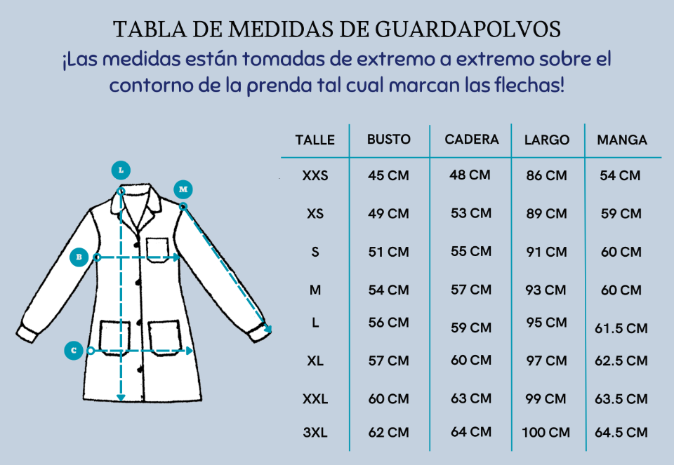 🔸 Nota: El talle de los guantes se enviará según el talle del guardapolvo: